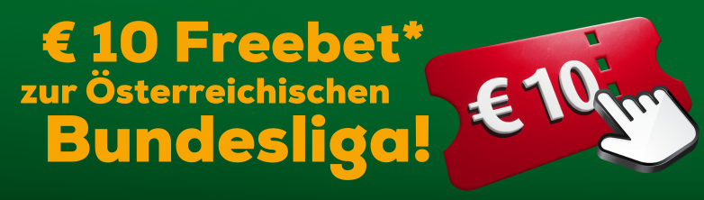- Die Freebet wird nach Abgabe eines Wettscheins (Mindesteinsatz € 10 und Mindestquote 1,50), der mindestens ein Spiel der Österreichischen Bundesliga enthält, aktiviert und wartet im Wettschein.